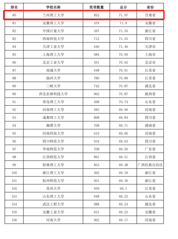 2022年全国普通高校大学生竞赛榜单(本科,TOP100)