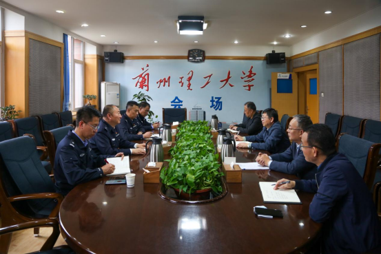 贾波对学校安全稳定各项工作给予充分肯定。他强调公安机关的工作目标是维护校园安全稳定,护航社会经济发展。今后七里河公安分局要把服务保障放在前面,关注重点人群,杜绝暴恐事件发生,确保校园稳定有序;加强警校深度合作。双方就政治安全、主动创稳、法制教育、安全稳定、公共管理、网络舆情、矛盾化解等方面工作进行协同合作;保持警校沟通联动,信息互通,加大校园周边安全隐患排查,发挥校园警务室职能,做好安全服务保障,营造安全和谐的校园环境。(撰稿:吴玉成;审核:张君)