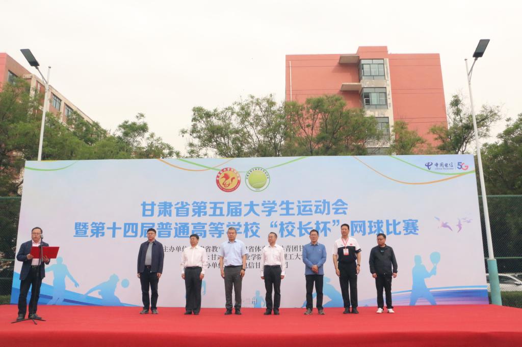 5月20日,甘肃省第五届大学生运动会网球项目和第十四届普通高等学校“校长杯”网球比赛在兰州理工大学彭家坪校区开幕。省教育厅党组成员、副厅长邓伟,兰州理工大学党委书记夏天东,兰州理工大学党委常委、副校长王全进,甘肃警察职业学院党委副书记、院长卢建军,仲裁委员会主任王茂生,中国电信甘肃公司资深经理张惠祥,中国电信兰州分公司党委书记敏隆宗,中国电信甘肃公司教育行业事业部总经理缪树昱等出席开幕式,邓伟宣布比赛开幕,开幕式由王全进主持。