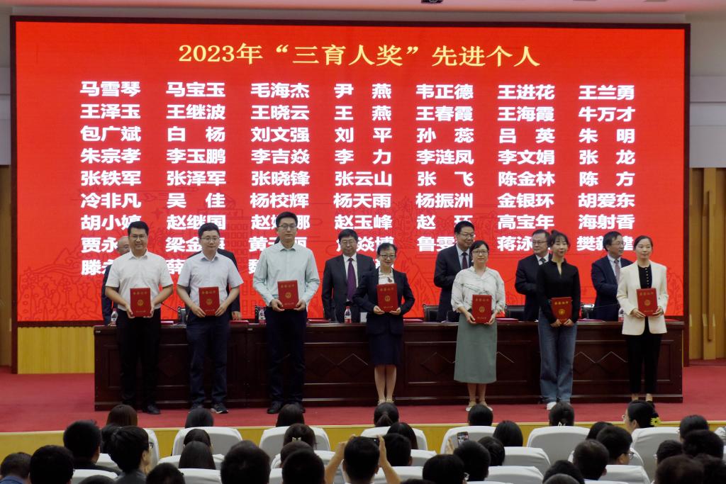 他表示,学校党委始终高度重视教师队伍建设,坚决贯彻落实党中央关于加强高等教育和教师队伍建设的方针政策,着力构建制度、资源、平台、服务四位一体的人才引育体系,培养造就了一大批高素质专业化教师,他们扎根陇原大地,孜孜求索、严谨治学、追求卓越,成为学校“红柳”精神的缔造者、传承者、力行者。在大家的共同努力下,学校各项事业发展不断迈上新台阶。他对全体教职工提出四点希望:一是希望广大教师不断坚定理想信念,忠诚党的教育事业;二是希望广大教师不断涵养师德师风,秉承高尚品格;师德师风是评价教师队伍素质的第一标准;三是希望广大教师躬耕教坛,潜心教书育人;四是希望广大教师积淀扎实学识,勇于践行科学精神。