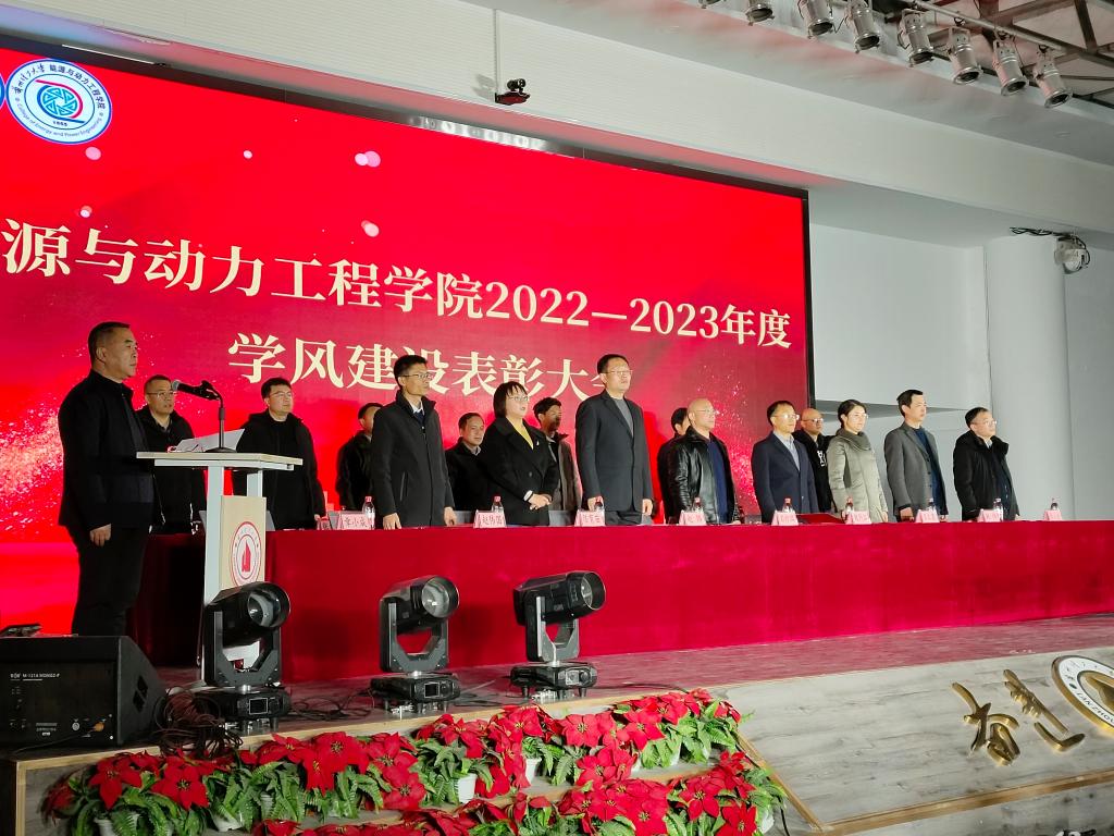 12月17日晚,能源与动力工程学院在兰工坪校区大学生活动中心四楼隆重举行2022-2023年度学风建设表彰大会暨“能”缘未来,舞“动”青春迎新晚会。学校党委常委、副校长彭珍瑞,党委学生工作部、校团委、学生就业服务中心负责人、学院班子、各系主任、全体辅导员、获奖学生代表和2023级新生共五百余人参加活动,会议由学院党组织书记主持。