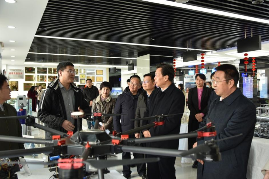 1月11日,甘肃省副省长陈得信在丝绸之路国际知识产权港进行了科技创新和成果转化调研工作。我校作为甘肃省唯一高校参展代表,为调研一行展示了学生的科技创新作品。