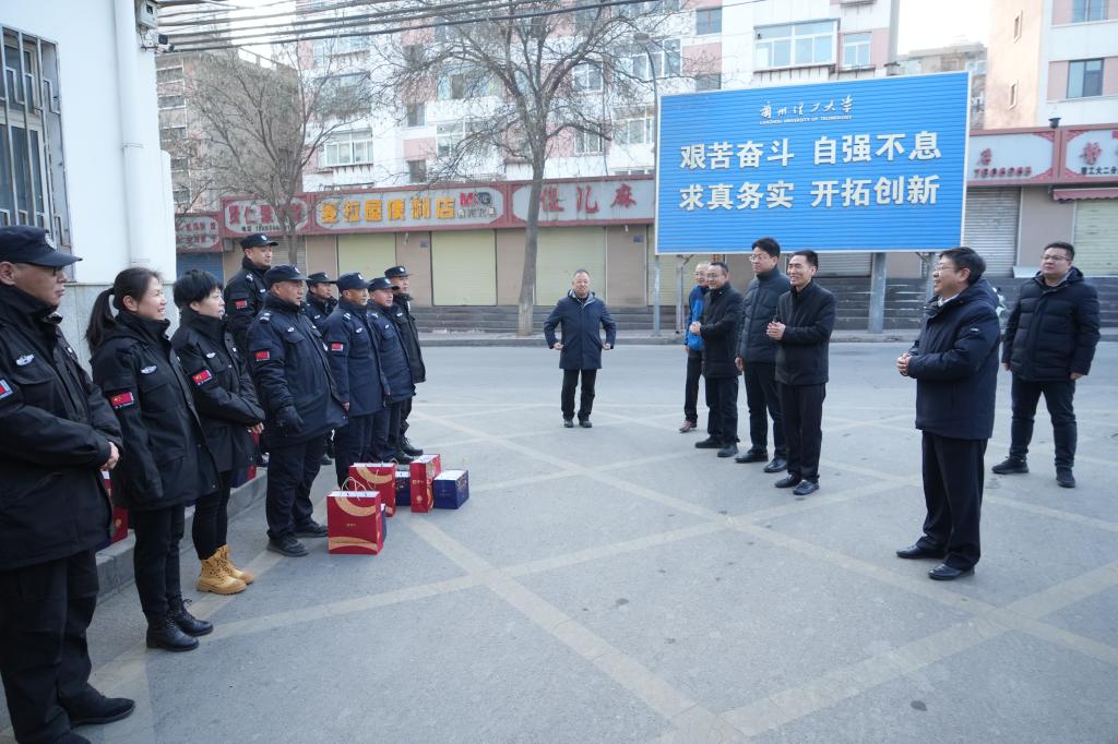 夏天东一行先后来到物业值班室、校医院、门岗、食堂、锅炉房等一线岗位,亲切慰问节日期间坚守在工作岗位的安全管理、后勤保障和医疗工作人员,对他们在春节期间坚守工作岗位表示感谢,祝福他们及家人新春快乐、阖家幸福;同时强调一定要把安全稳定工作放在首位,要在职在岗、在岗尽责,以高度的紧迫感和责任感,加强值班值守,全力做好寒假、春节期间的各项工作,确保校园的平安、和谐、稳定。