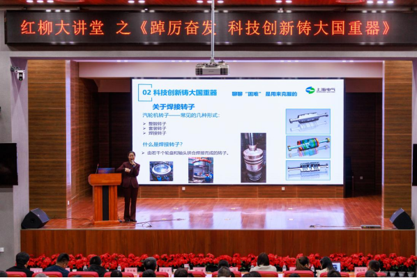 刘霞校友以《踔厉奋发科技创新筑大国重器》为题,结合自己的成长经历,分享自己在学校求学时生活和学习的点点滴滴,通过“澎湃动力由此出发”、“科技创新铸大国重器”、“未来展望”分享了汽轮机发展过程中的攻坚克难历程,刘霞校友用所学专业长期在企业一线奋力攻关,克服一个个困难,突破一道道技术封锁,最终填补国家空白、攻克世界级焊接难题,铸造国之重器的奋斗经历。刘霞鼓励同学们,中华民族伟大复兴的中国梦,我们每个人都是追梦人,追梦人就要用艰苦奋斗的“红柳精神”涵养科技报国之志,踔厉奋发、下苦功夫练好真本领,在制造强国之路上,用精益求精、追求卓越的敬业精神勇于探索,为实现中国式现代化贡献青春力量。