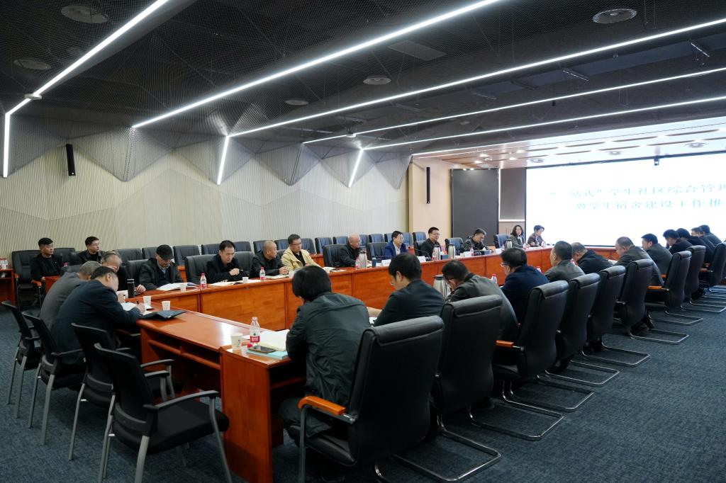 会上,与会人员认真学习了教育部《高校“一站式”学生社区综合管理模式建设工作指南》、教育部《关于加强高校学生宿舍建设的指导意见》。党委学生工作部、国资处、学生公寓管理中心负责人就相关工作分别作了汇报。
