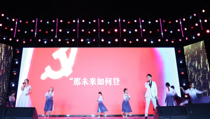 本次晚会分为“青春逐梦”“破浪而行”“共筑未来”三个篇章。伴随着暖场视频《寄往未来的信》的播放,在场所有毕业生跟随着视频重温了大学生活的点滴回忆。开场歌舞《星光如海》活力上演,拉开了晚会序幕。