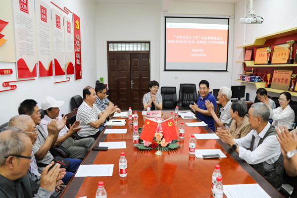 2023-2024年度,学校深入贯彻落实中央及省委关于加强新时代离退休干部党的建设工作的意见及措施,退休第9党支部获评全省“六好”离退休干部示范党支部,“党建引领·服务青少年成长成才”离退休干部发挥作用品牌被评选为“全省离退休干部发挥作用品牌”。为树立典型、表彰先进,带动更多的离退休干部和党员奋进新征程、建功新时代,离退休党委对评选出的54名优秀共产党员和12名优秀党务工作者给予表彰奖励,离退办主任陈卫雄宣读了离退休党委表彰文件,郭旭隽为6名申领“光荣在党五十年”老党员代表颁发纪念章并合影留念。