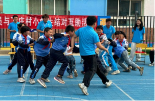 在学校操场,来自材料学院的30名研究生志愿者与小学4年级的30名学生共同开展了结对互助活动,志愿者与小朋友通过游戏、表演节目、家访等多种形式,相互了解,增进认识,活动受到了小朋友及家长的热烈欢迎和高度赞誉。