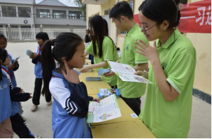 在教学楼西侧,法学院的志愿者开展了“法治中国青春行”主题宣传活动,志愿者通过发放法律知识宣传资料、悬挂横幅标语、现场解答法律咨询等多种形式,向广大群众、青少年普及民法典、未成年人保护法中的相关知识,加强青少年法治教育,提升他们的法律意识。
