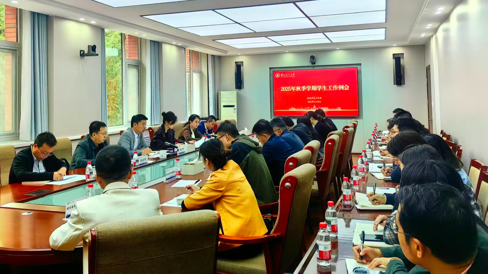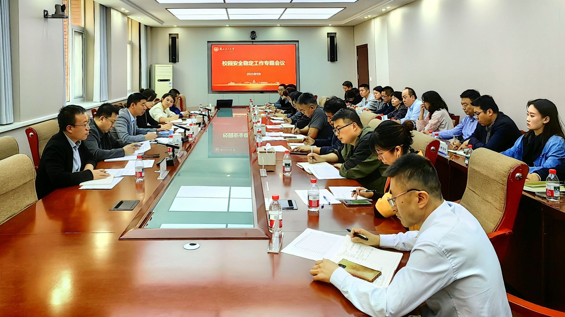 全体与会人员专题学习《习近平谈治国理政》第五卷。各部门负责人聚焦近期重点工作和国庆节前相关事宜做了详细安排。学生就业创业服务中心通报了各学院2026届毕业生去向落实进展情况,安排了“生涯就业嘉年华”系列活动,并从进一步做好毕业生就业指导、签约跟踪等方面做了系统规划。校团委安排了团代会召开、团组织关系转接和团员发展等相关工作。学生处对2025年学生工作项目立项、资助工作、心理健康教育、公寓管理、校园安全等内容进行全流程、精细化安排,通报了近期“筑牢安全防线·守好法治底线”主题班会落实情况。
