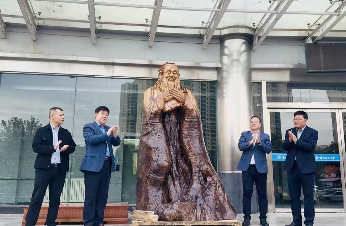 论坛后举办了兰州理工大学“十五载智汇商海MBA续写辉煌”MBA教育15周年系列活动。卢少卿在敦雅楼前为MBA校友会捐赠的木质孔子像揭幕,致敬“万世师表”,传承尊师重道和育人初心。