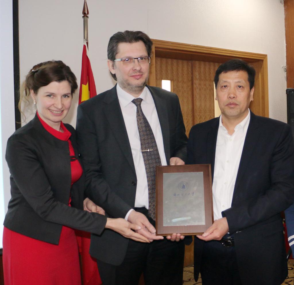 芮执元校长代表学校向兹诺巴·尼古拉先生赠送纪念品