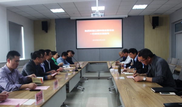 4月24日上午,江苏省江阴市副市长杨云一行10人来校交流访问。学校副校长俞树荣、袁幼新参加活动,科技处处长冀宏主持座谈会。