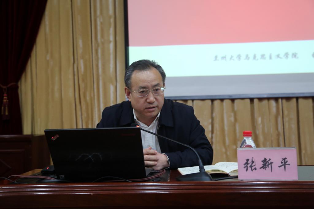 与会人员一起观看了3月18日习近平总书记主持召开的学校思想政治理论课教师座谈会视频,重温了习近平总书记在学校思想政治理论课教师座谈会上的重要讲话精神。兰州大学马克思主义学院院长张新平教授作了题为《用习近平新时代中国特色社会主义思想铸魂育人——深入学习贯彻落实学校思想政治理论课教师座谈会精神》的辅导报告,报告从办好思想政治理论课意义重大、办好思想政治理论课关键在老师、推动思想政治理论课改革创新、加强党对思想政治理论课建设的领导等四个方面对习近平总书记重要讲话精神进行了详细解读,并与大家一起分享了自己的体会和感悟。