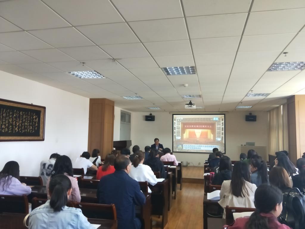在观看了《习近平总书记在纪念五四运动100周年大会上的讲话》新闻报道之后,夏天东结合学习习近平总书记讲话,围绕当代的大学生建功立业,深刻阐述了新时代大学生的青春与奋斗。他通过引用十九大报告、《中国共产党章程》以及《习近平总书记在全国教育大会的讲话》中关于青年的论述,强调了青年学生在党的事业中的定位与作用,鼓励同学们响应习近平总书记的号召,肩负“天将降大任于斯人”的时代使命,发扬五四精神,以实现中华民族伟大复兴为己任,不辜负党的期望、人民期待、民族重托、不辜负我们这个伟大时代。