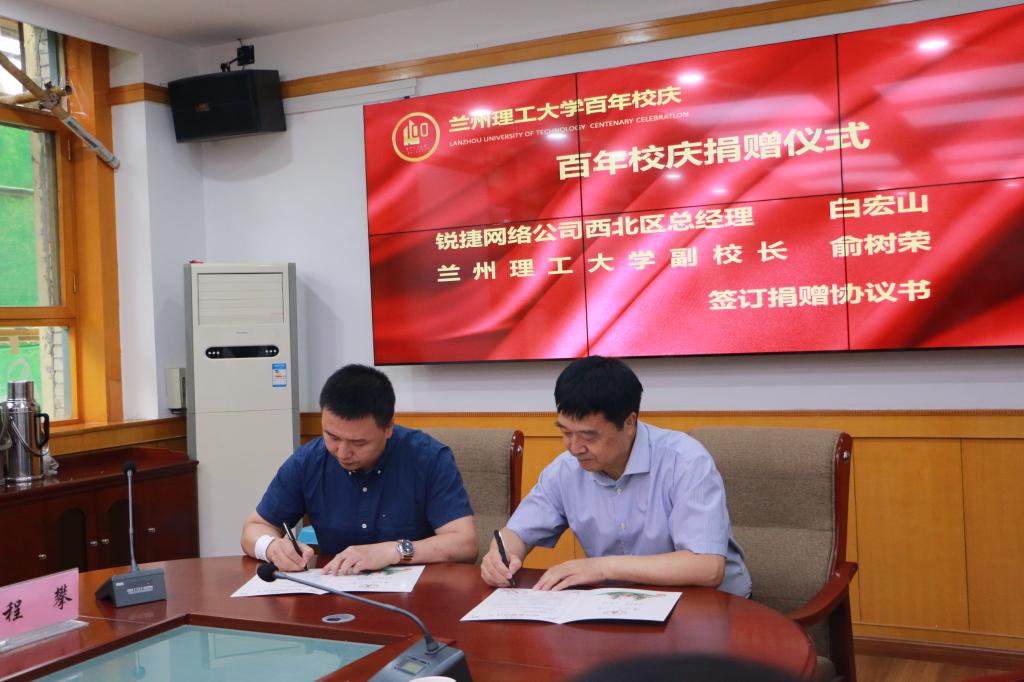 俞树荣代表学校分别与中国电信股份有限公司兰州分公司、锐捷网络股份有限公司签订了捐赠协议书。