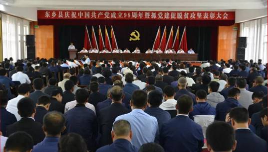 6月30日,东乡县举行庆祝中国共产党成立98周年暨抓党建促脱贫攻坚表彰大会,对全县涌现出的先进基层党组织、优秀共产党员、优秀致富带头人、先进集体代表等进行了表彰。我校派出的东乡县五家乡下庄村帮扶工作队被评为帮扶工作队先进集体,下庄村驻村工作队队长、第一书记化希青同志被评为东乡县抓党建促脱贫攻坚优秀共产党员。