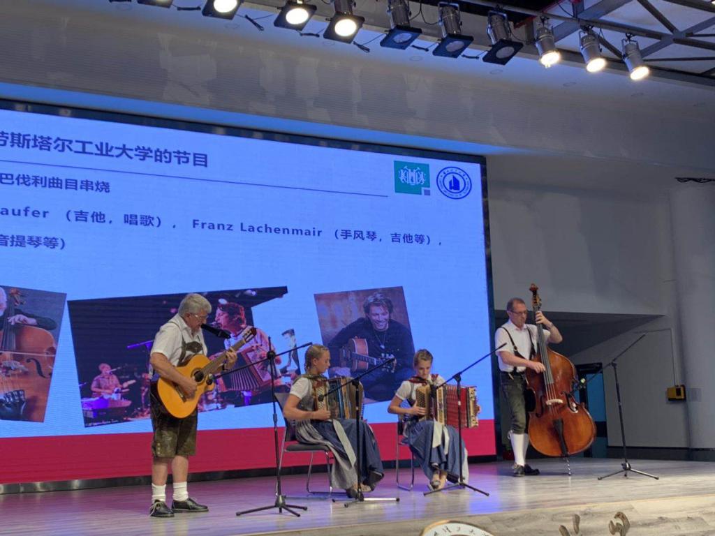 学术报告会后,德国巴伐利亚三人乐队Maulquappen和施蒂里亚手风琴组合Beargar Steirar Duo为我校师生带来了极具民族特色的文艺演出,我校红柳艺术团表演古典舞《书简》及《生来倔强》的演唱。学校国际合作处、团委、各学院主管国际合作交流的领导、材料、机电、石化、能动、土木、电信、计通、经管、设艺、生命等学院共300余名学生、国际教育学院30名留学生参加了下午的学术报告及文艺演出。