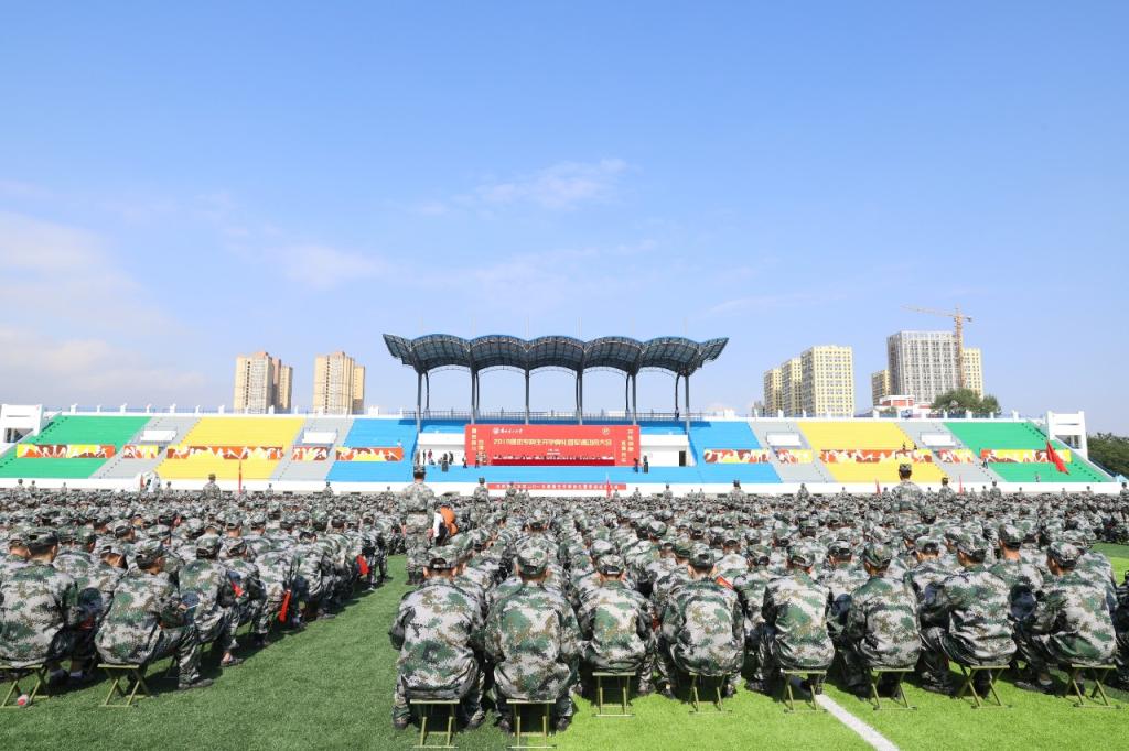 9月2日上午,兰州理工大学2019级本专科生开学典礼暨军训动员大会在彭家坪校区田径场举行。31682部队部队长彭信平大校、副政委吴君中校,学校党委副书记、校长芮执元,副校长韦尧兵、李仁年、王全进、曹洁、宋琦、陈志华、胡洁,中国人民解放军驻兰州理工大学后备军官选拔培养办公室主任纵雁大校,31682部队政治工作部副主任,2019级新生军训团团长刘晓东和6060名新同学参加开学典礼。副校长曾华辉主持开学典礼。