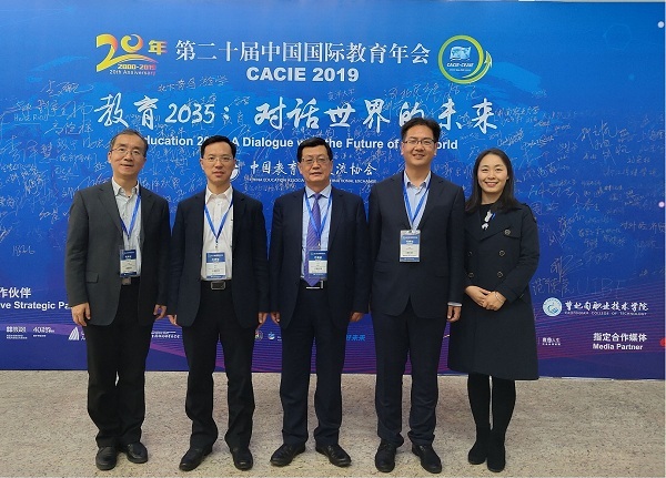 2019年10月18日-20日,由中国教育国际交流协会主办的第二十届中国国际教育年会全体大会在北京国家会议中心举行。年会紧扣国家教育和外交大政方针,以“教育2035——对话世界的未来”为主题,探讨面向2035年的教育现代化,推动更高水平的教育对外开放,共同擘画国际教育发展美好蓝图。大会围绕各级各类国际教育领域热点话题开展了近40场丰富多样的活动。中国教育部党组书记、部长陈宝生出席全体大会并作重要讲话。中外政府部门、各级学校、科研机构、教育服务机构和企业代表3000余人出席年会。学校党委常委、副校长韦尧兵、陈志华和国际教育学院负责人参加会议。