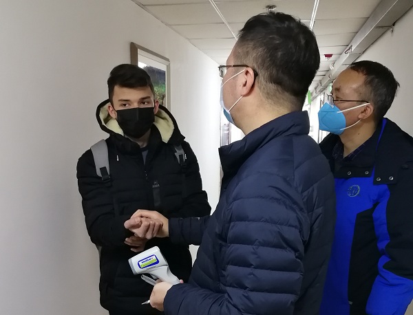 今年寒假,学校有233名国际学生在校,35名学生在境内研学、旅游。防控伊始,学校将来华留学生作为在校学生疫情防控工作重点,第一时间开展了方案部署和防控措施。校领导和防控领导小组成员单位负责人多次深入现场,协调指导工作开展。国际教育学院班子成员时刻坚守在防控第一线,第一时间组织购买口罩、消毒液并及时下发给学生。学院外出教职工全部提前放弃休假返回学校,通过微信、电话全面开展疫情防护指导。国际学生辅导员在逐一开展国际学生行程信息排查通知的同时,组织境内返校学生严格隔离观察。校医院派发了体温计、一次性手套等物资,并组织人员深入公寓开展诊断治疗。后勤管理处组织人员对公寓开展全面消毒,并实行公寓封闭式管理。保卫处严格实行国际学生“出入证”制度,严控国际学生出入校园……一项项严密有序的措施,一条条防护知识,一段段疫情通报,24小时不间断的指导服务,让国际学生消除了恐慌、焦虑。