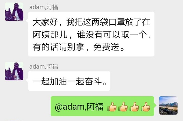 阿福,也门国际学生,他主动贡献出自己的口罩,放在公寓值班室,让其他急需的国际学生免费领取。他多次向学院提出请求担任志愿者服务队伍成员,为国际学生外出采购生活用品和提供服务。