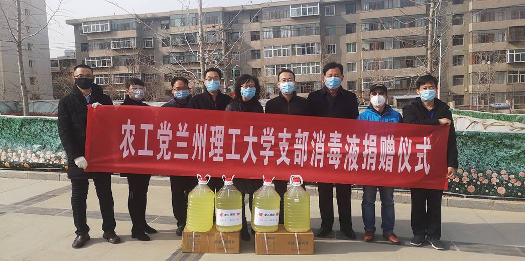 2月19日下午,农工党兰州理工大学支部主委王宝军、副主委罗旭以及成员韩立俊和郑玉峰代表农工党兰州理工大学支部向学校捐赠一批防疫物资。此次捐赠的80公斤“84”消毒液和200瓶朗索消毒泡腾片,是由农工党兰州理工大学支部成员踊跃捐款5000多元,发挥资源优势多方协调,千方百计寻找货源采购而来。农工党兰州理工大学支部第一时间将这批物资捐赠给学校,用于校园师生公共空间的消毒杀毒工作,为疫情防控工作贡献了一份力量。