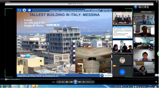 2020年5月9日,学校承办的第十二个全国防灾减灾日西部地区系列科普活动正式开启。国际减震控制学会(ASSISi)主席、意大利能源环境及新技术研究院(ENEA)地震工程部门主任Paolo Clemente博士应邀做客学校承办的2020年国家防灾减灾日土木工程国际知名专家线上报告会,Clemente博士报告的题目是“意大利隔震研究最近进展和工程应用经验(Seismic Isolation: State-of-the-Art and Experience in Italy)”。