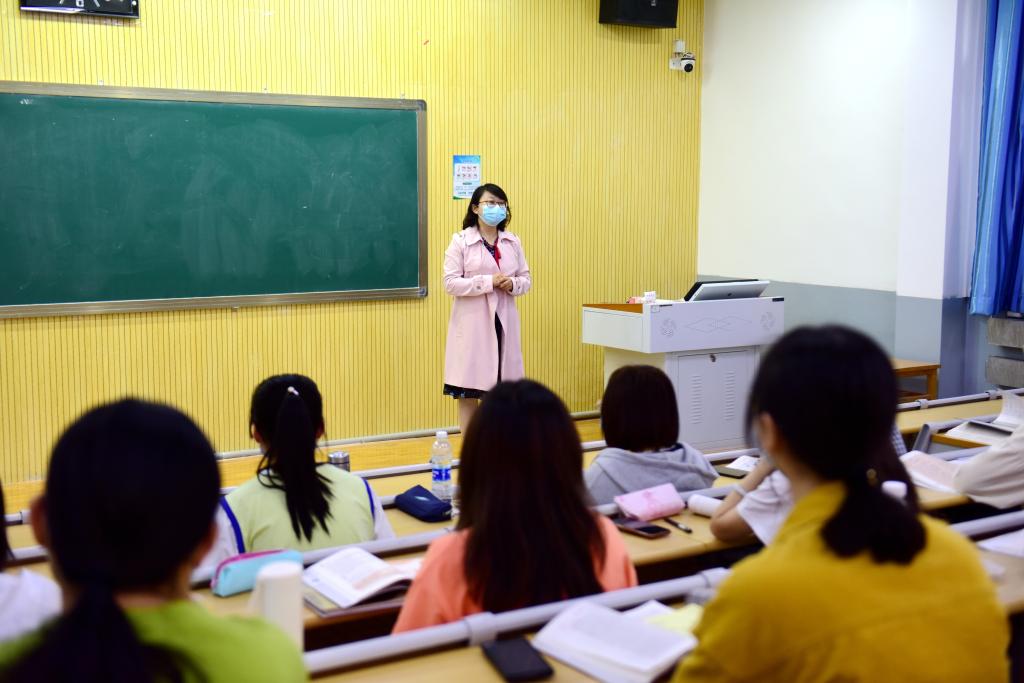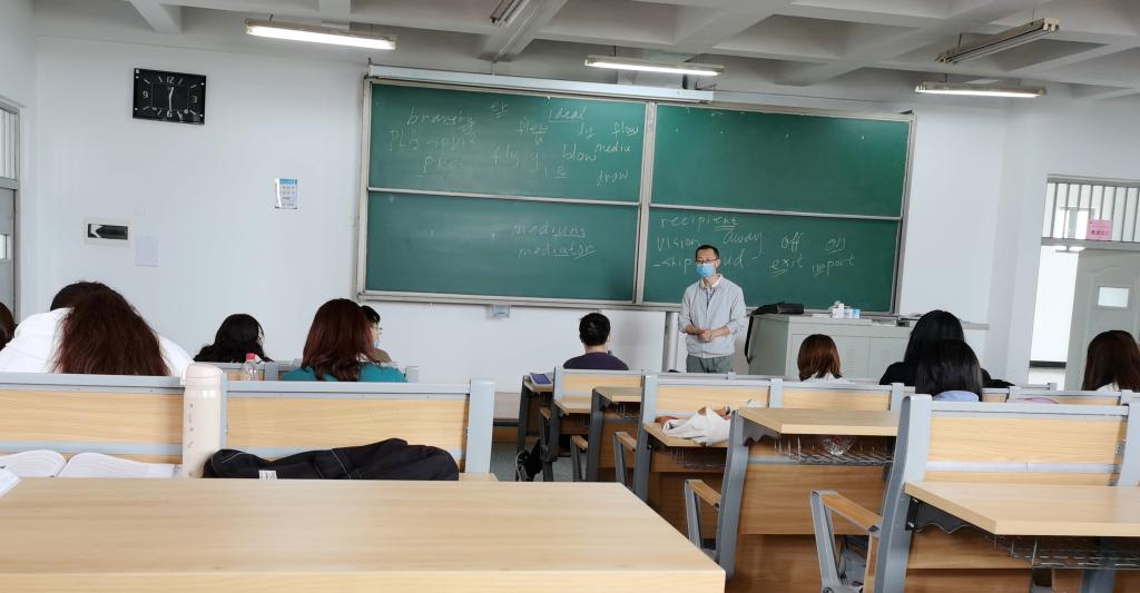 一大早,外国语学院的庞茜之老师就来到了教室,为学生上本学期线下的第一堂课。她说:“在线下正式上课之前,学校已经进行了一段时间线上线下课程的过渡,比如说在线上提前告知同学需要预习的内容,并根据课堂情况,如果学生有疑问,会抽出时间对学生进行课后辅导。