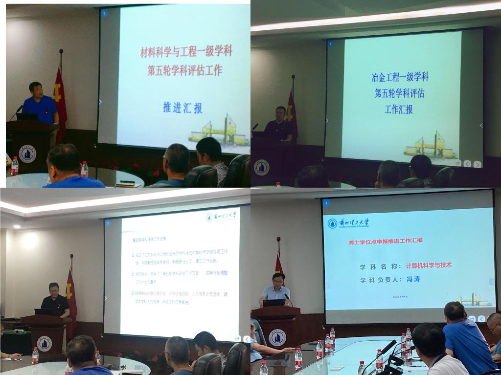 我校22个一级学科所在学院院长分别代表各自学院就第四次工作推进会以来有关学科评估工作准备与学科建设情况进行了汇报,并分享和交流了工作举措与典型工作经验。李仁年结合第四轮学科评估的情况与学科建设发展现状进行了工作指导,陈志华、胡洁结合天津大学、上海交大的工作经验,对各学院、各学科在特色方向凝练、人员组织等具体材料撰写工作进行了针对性的指导。机电工程学院汇报工程博士点申报的工作准备情况,电气工程、计算机科学与技术、数学、物理、管理科学与工程、马克思主义理论也汇报了申请一级学科博士授权点的工作准备情况,并就下阶段工作计划进行了汇报。
