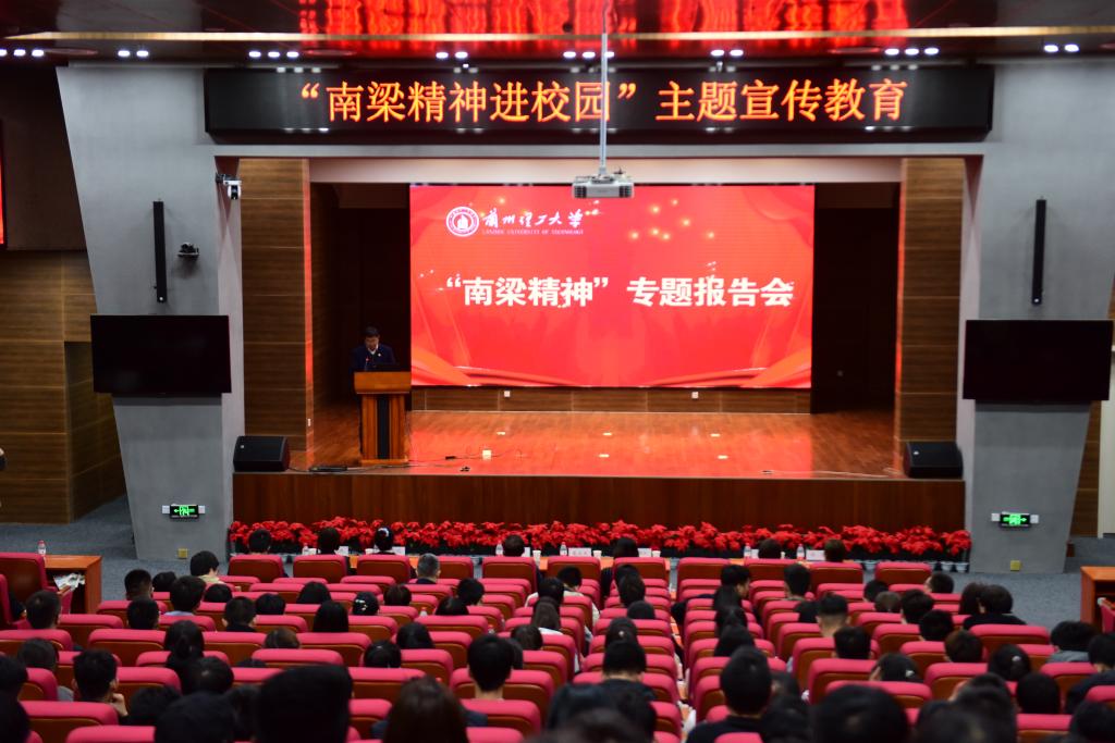 10月26日下午,甘肃省“南梁精神进校园”主题宣传教育活动在兰州理工大学举行。此次活动包括“讲好南梁故事•永远跟党走”主题展览以及专题报告会。学校党委书记夏天东主持报告会,马克思主义学院师生代表,辅导员代表,石化学院、机电学院、电信学院、土木学院等学生代表共计300余人参加了报告会。
