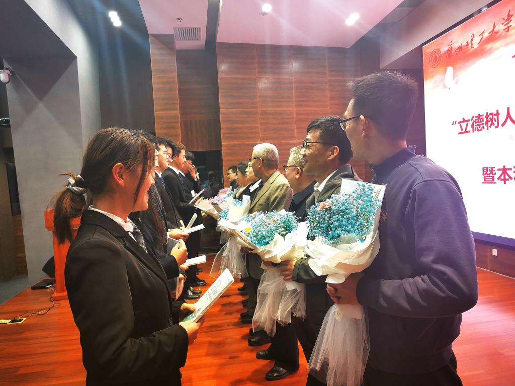 导师代表接受学生“感恩心语”和鲜花