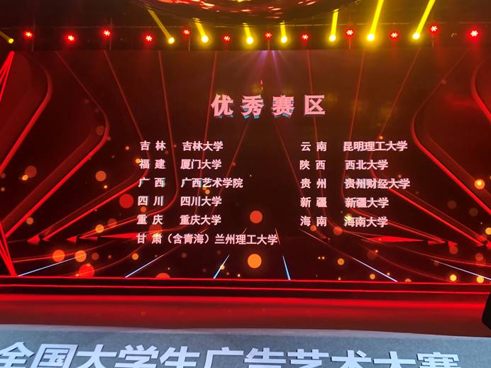 兰州理工大学共获得全国总决赛一等奖1项、三等奖1项,优秀奖10项,获得甘肃赛区一等奖10项、二等奖13项、三等奖23项的优异成绩。同时,兰州理工大学荣获全国优秀赛区,获奖等级和数量均位居甘肃省高校首位。我校设计艺术学院视觉传达设计专业教师黎映川指导的柳博文、高德祥同学的作品斩获了全国一等奖。黎映川、牛耕、史小磊、李丽、贠欣、黄坤等老师荣获优秀指导教师。