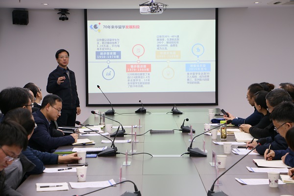 陈志华作《后疫情时代来华留学教育的使命与担当》主题报告,从70年来华留学教育成果、新冠疫情对来华留学的影响、疫情期间来华留学的“中国贡献”、后疫情时代来华留学教育方向等方面,结合案例分析了来华留学生源学历结构、舆情应对、人才培养、教学改革等问题,阐明后疫情时代来华留学教育要化危为机、行稳致远,做好政策与环境、质量与效益、安全与保障,积极推进人工智能与国际教育融合发展、促进教学改革,做强“留学中国”品牌,使中国成为具有国际影响力的全球教育中心、世界优秀青年向往的留学目的地。随后,他与现场全体党员就境外国际学生管理、西部高校来华留学教育发展方向等问题进行了深入研讨并解答疑问。