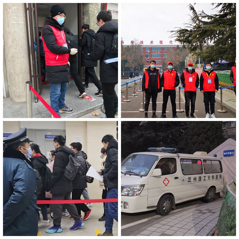 为保障广大考生和工作人员的健康、安全和考试顺利有序,学校及时制定《2021年全国硕士研究生招生考试兰州理工大学考点新冠肺炎疫情防控工作实施细则》,提前联系我校考点考生所在的4所高校,就做好疫情防控和考试诚信等相关工作进行了沟通协调;通过学校官网、电子显示屏、新媒体等多种形式,将考生须知、考场安排、防疫要求等信息及时发布;考务领导小组相关成员单位结合各自工作实际,对考试纪律、物资设备、校内交通安保、餐饮服务、网络信息务等工作做出周密安排;考前先后举行面向考务工作人员、监考员、志愿者等不同工作岗位的相关业务培训,明确工作流程和具体要求,提高考试组织工作的规范性;本次考试共有500余人次参与考务工作,在校门口、考场楼门口铺设消毒地毯、加强测温,每个教室均配备口罩、免洗手消毒液等物品供使用,确保考场纪律和考试安全。