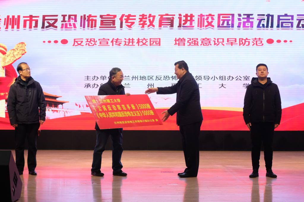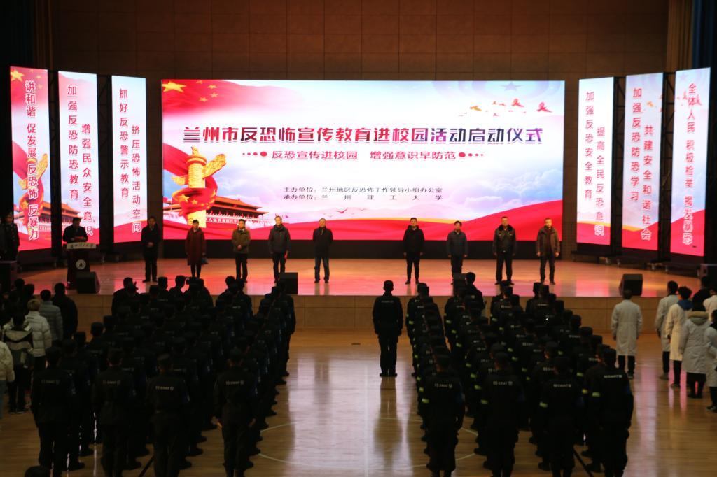 12月27日,兰州地区反恐办在学校兰工坪校区体育馆举行兰州市“反恐怖宣传教育进校园”活动启动仪式。兰州市公安局副局长、兰州地区反恐怖工作领导小组办公室主任郭玉宏出席并讲话。兰州理工大学、市委宣传部、市教育局、市卫生健康委员会、市应急管理局负责人出席。