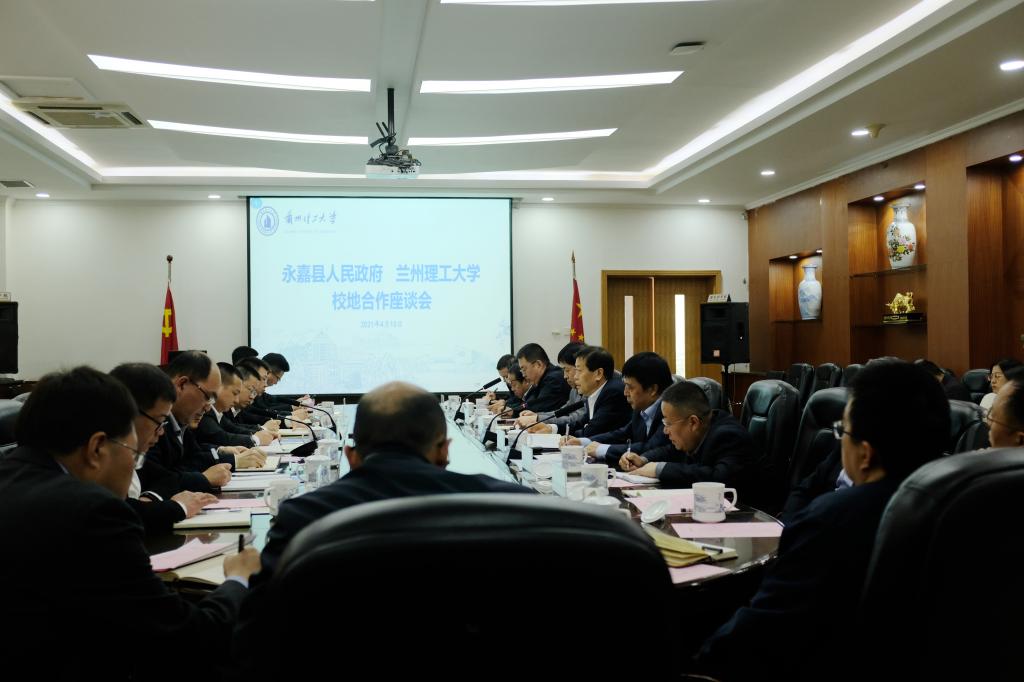 4月10日,兰州理工大学与永嘉县人民政府校地合作座谈会在兰工坪校区逸夫科技馆3号会议室举行,双方就开展新一轮合作共建开展对接洽谈,共谋发展之策。学校党委副书记、校长芮执元,党委常委、副校长俞树荣,永嘉县委副书记、县长吴呈钱,永嘉县委常委、组织部部长姚海,永嘉县人民政府副县长胡宋孝参加会议。