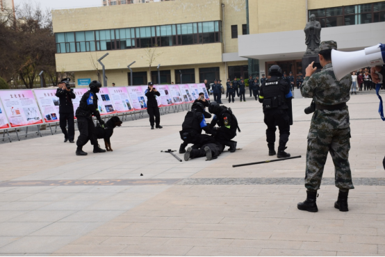 七里河公安分局反恐特警大队开展了反恐防暴演练,展示了反恐装备及警用装备,向师生普及反恐防范知识,提升了师生知恐、识恐、防恐、反恐的能力和意识。