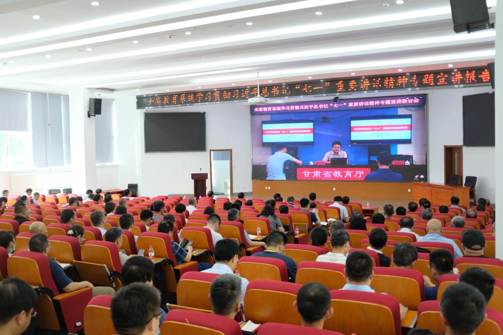 7月16日,省委教育工委、省教育厅举办全省教育系统学习贯彻习近平总书记“七一”重要讲话精神专题宣讲报告会,省委宣讲团成员、兰州大学马克思主义学院党委书记、博士生导师蔡文成教授宣讲报告。省纪委监委派驻省教育厅纪检监察组组长雷江红主持报告会。我校设分会场,校领导,全体中干,思政课教师,辅导员在线聆听了报告。