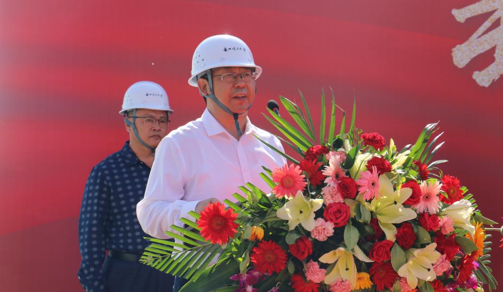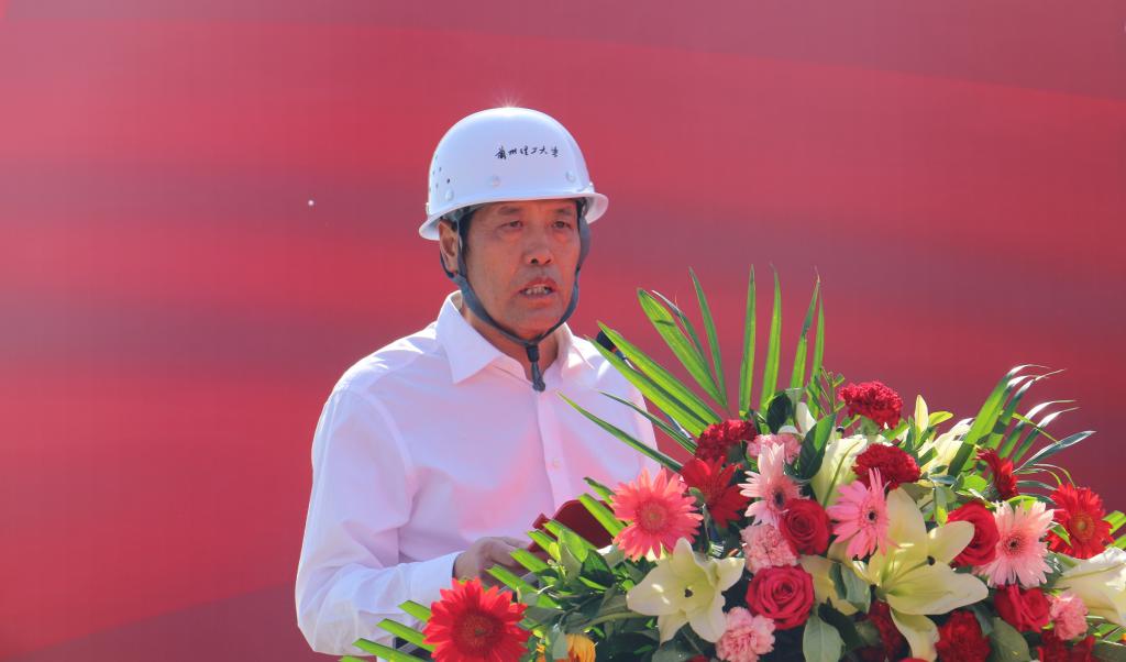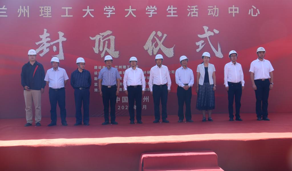 参加仪式的领导和来宾为兰州理工大学大学生活动中心封顶,共同见证工程建设的阶段性成果。