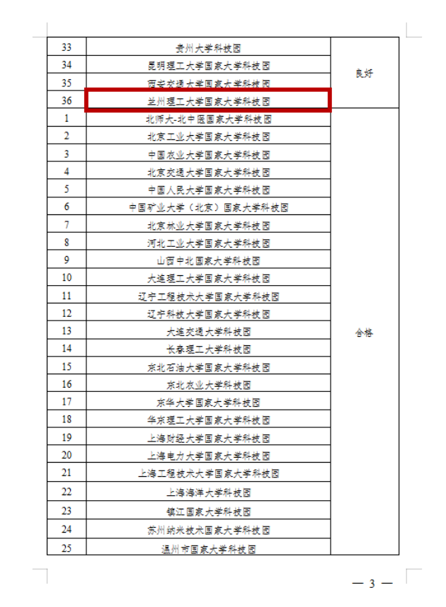 10月29日,科技部、教育部公布国家大学科技园绩效评价结果,兰州理工大学国家大学科技园获得良好评价。全国共有115家国家大学科技园参与此次绩效评价,115家国家大学科技园中,有22家优秀,36家良好,40家合格,17家较差。