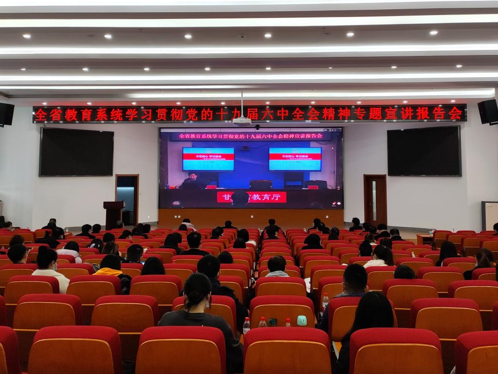 11月29日下午,全省教育系统学习宣传贯彻党的十九届六中全会精神专题宣讲报告会召开,兰州大学马克思主义学院教授刘先春作专题辅导,省委教育工委书记,省教育厅党组书记、厅长王海燕主持会议并讲话。