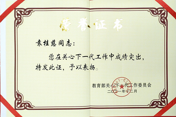 莫道桑榆晚,为霞尚满天。袁桂慈老师说,退休后投身关心下一代工作、常年勤勤恳恳耕耘在教学科研一线的学校关工委“五老”不在少数,自己能获此殊荣,实感幸运。