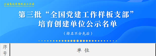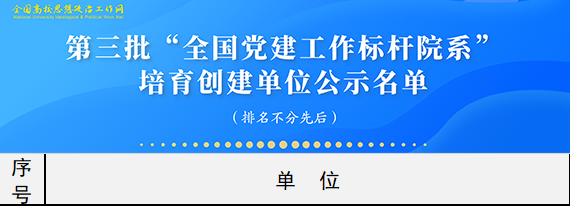 据悉,根据《教育部办公厅关于开展第三批新时代高校党建示范创建和质量创优工作的通知》安排和遴选工作方案,经省级党委教育工作部门推荐、资格审查、专家评审、教育部党的建设和全面从严治党工作领导小组成员单位集中审议,遴选产生了11个全国党建工作示范高校、100个全国党建工作标杆院系、1000个全国党建工作样板支部。