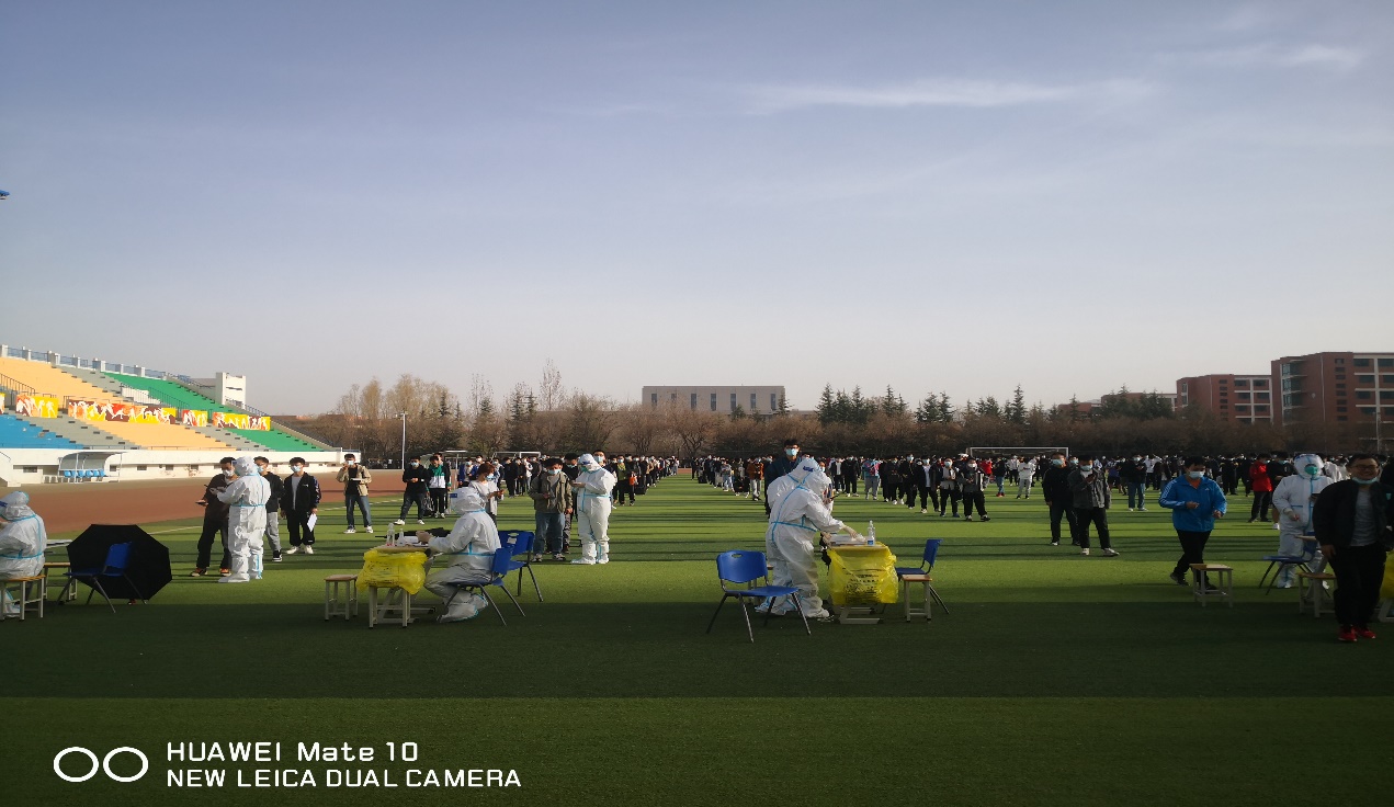 有这么一群人,再次选择了风里来夜里去、逆行出征。一张桌子、一把椅子就是他们的战位,一套防护服、一副防护面罩就是他们的战袍。我们看到的是那透着温暖坚毅的双眸和N95口罩摘掉后满脸勒痕的笑容;我们看不到的是橡皮手套里那一双双时而冻得僵硬、时而浸满汗水还在强忍着疼痛的手和密不透风的防护服里沁透汗水的疲惫身躯。即使已经连续作战了近一个月,也依然闻令而动、无所畏惧在岗位上坚守。一袭征衣、一颗丹心、一双妙手,何惧疫魔汹汹,不改医者仁心。他们就是由校医院取得核酸采样资格的医务人员组成的“大白”队伍,他们在教师干部志愿者的配合下,组成了24个采样台。按照属地和学校安排,在兰工坪校区和彭家坪校区、家属区分别对师生、家属及校内用工等进行了六轮全员核酸采样和重点人群多轮次核酸采样,采样近20万人次,截止目前检测结果全部为阴性。他们每个人都承担了上万人次的核酸采样任务,有些同志带病坚持工作、有些女同志在生理期,背后的汗水和辛劳不言而喻。问及他们“累不累、苦不苦时……”他们的回答是:“累,但我是一名医务工作者,是师生心中的‘大白’!”