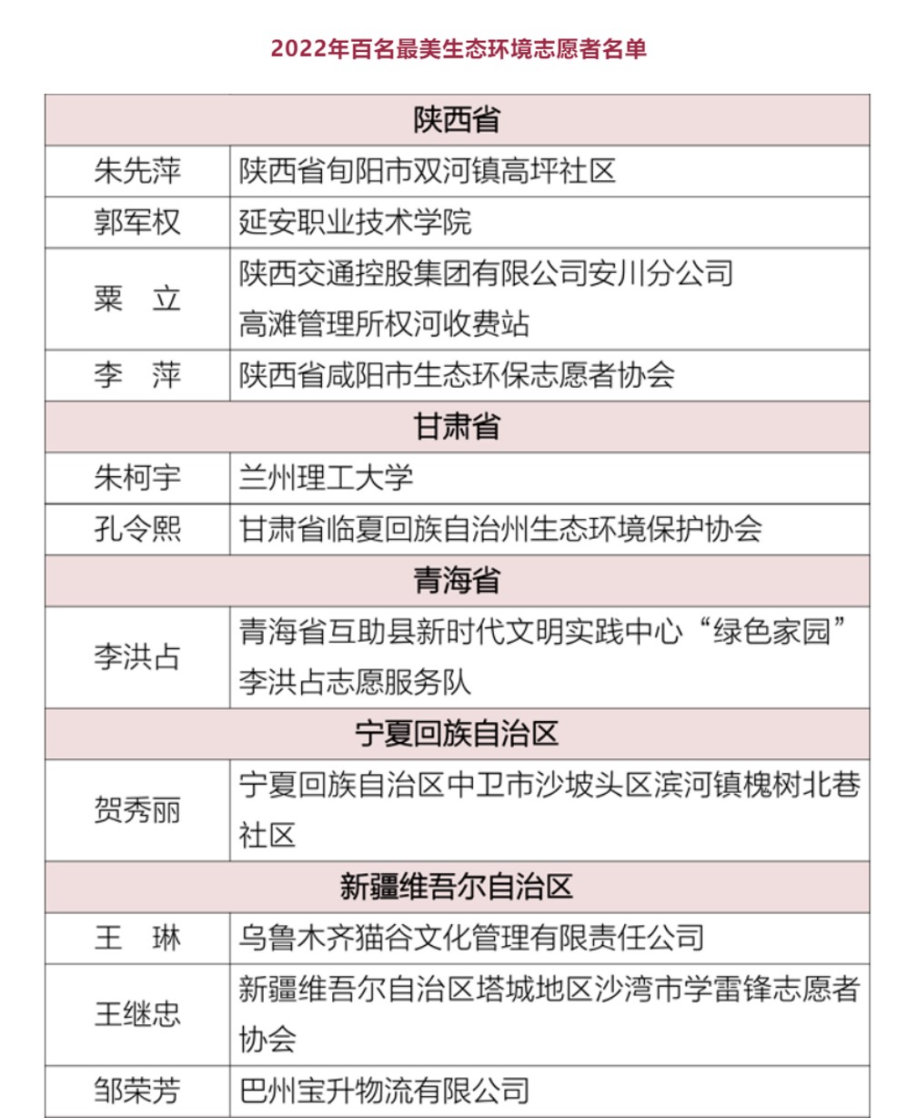 入选全国“百名最美生态环境志愿者”