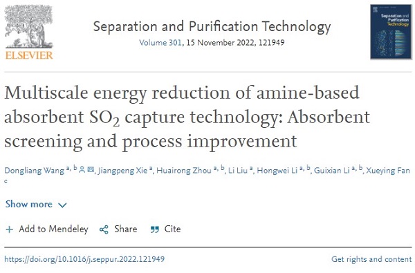 近日,石油化工学院科研团队——甘肃省绿色催化与过程工程团队成员王东亮副教授作为第一作者和通讯作者,在工程技术领域中科院一区TOP期刊《Separation and Purification Technology》(影响因子9.316)发表题为“Multiscale energy reduction of amine-based absorbent SO2capture technology: Absorbent screening and process improvement”(DOI:10.1016/j.seppur.2022.121949)的高水平研究论文。