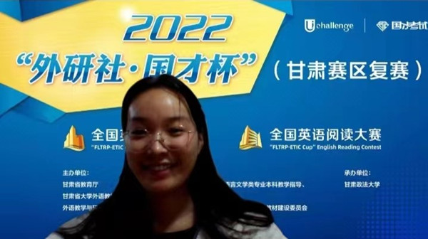 本次大赛由甘肃省教育厅、甘肃省大学外语教学研究会、外语教学与研究出版社共同主办,甘肃政法大学承办,甘肃省高等学校外国语言文学类专业本科教学指导、认证与教材建设委员会,甘肃省高等学校大学英语教学指导与教材建设委员会,甘肃省翻译工作者协会等单位协办。来自省内二十多所高校120余名参赛选手线上进行激烈角逐,特等奖前三名选手将代表我省参加全国决赛。