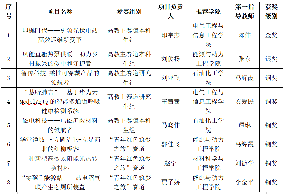 兰州理工大学第八届中国国际“互联网+”大学生创新创业大赛国赛获奖情况
