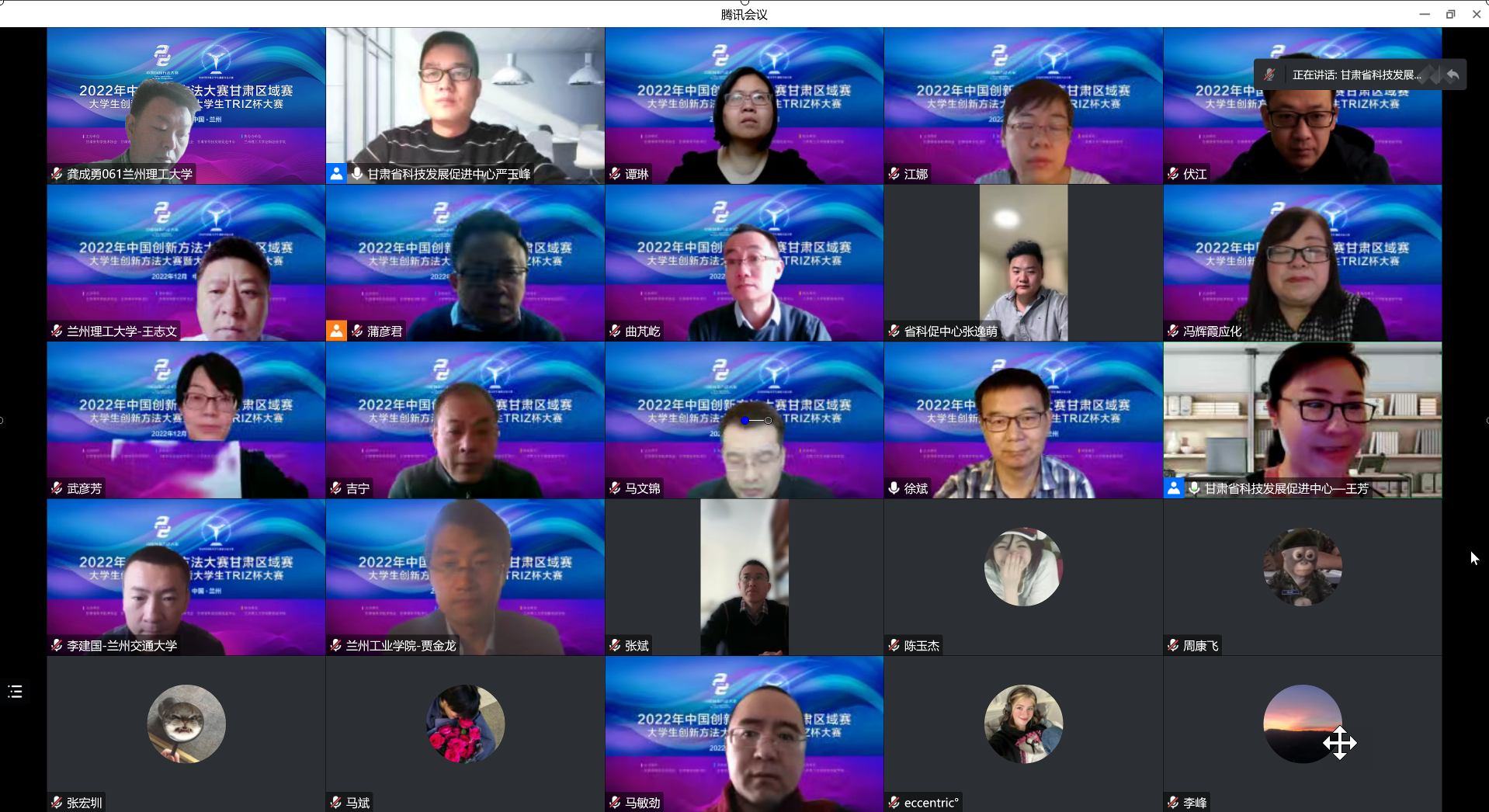 12月17日,2022年中国创新方法大赛甘肃区域赛大学生创新方法大赛在兰州圆满收官,我校创新创业学院协办本届大赛,大赛由甘肃省科学技术厅、甘肃省科学技术协会主办,甘肃省科技发展促进中心和甘肃省创新方法研究会承办,竞赛活动因疫情防控要求采用在线会议的形式。竞赛开幕于上午9:00正式开始,开幕式结束后参赛选手展开“线上”竞技角逐。
